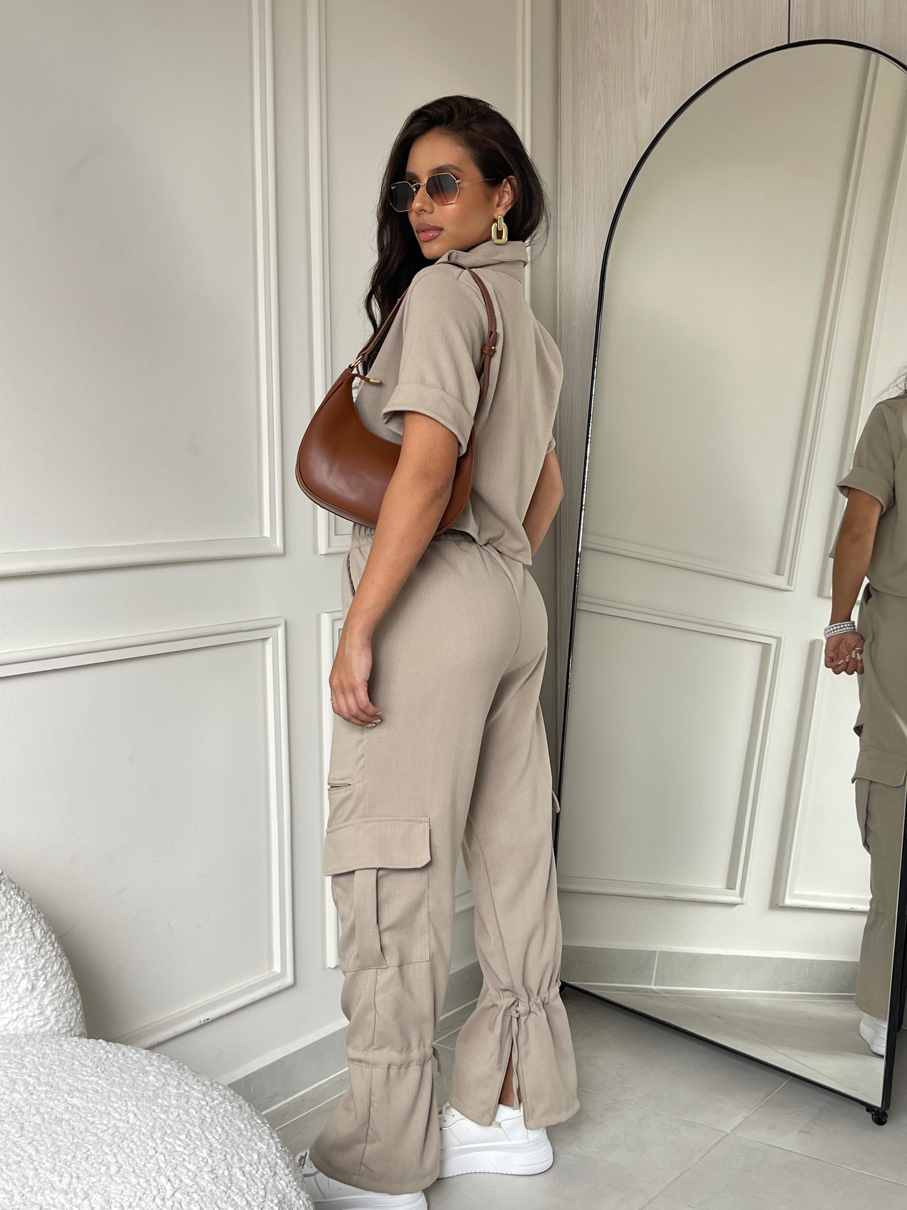 Set fabricado en tela tipo lino con elongación y con cierres graduables, y botones que te harán ver siempre perfecta